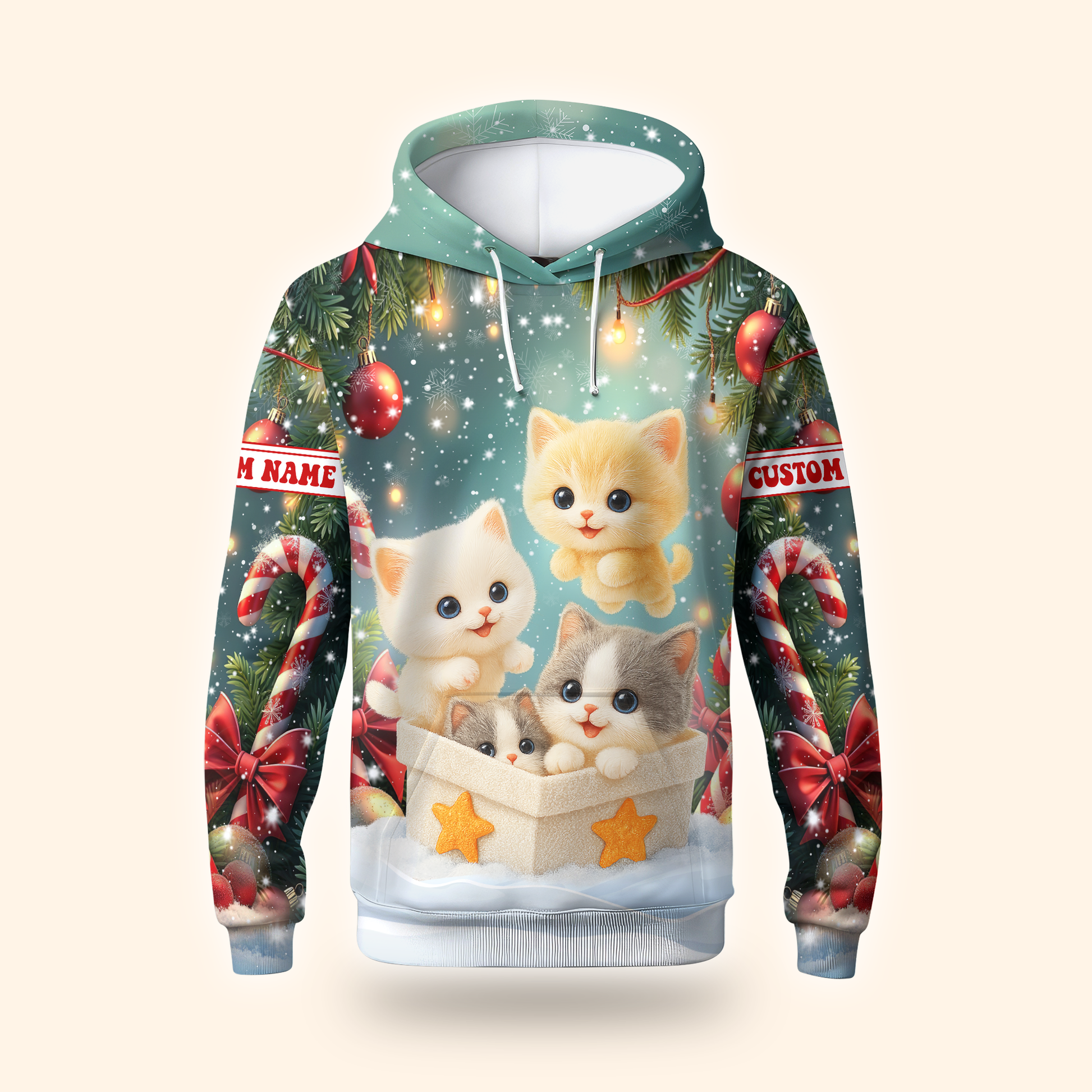 Cute Christmas Cat Hoodie – Kittens in Gift Box Holiday Zip Up