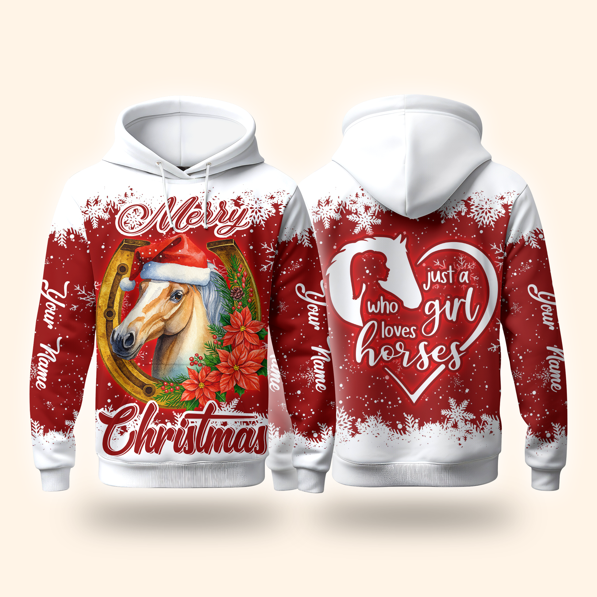 Just a Girl Who Loves Horses Christmas Hoodie – Merry Horse Lover Zip Up Sweatshirt