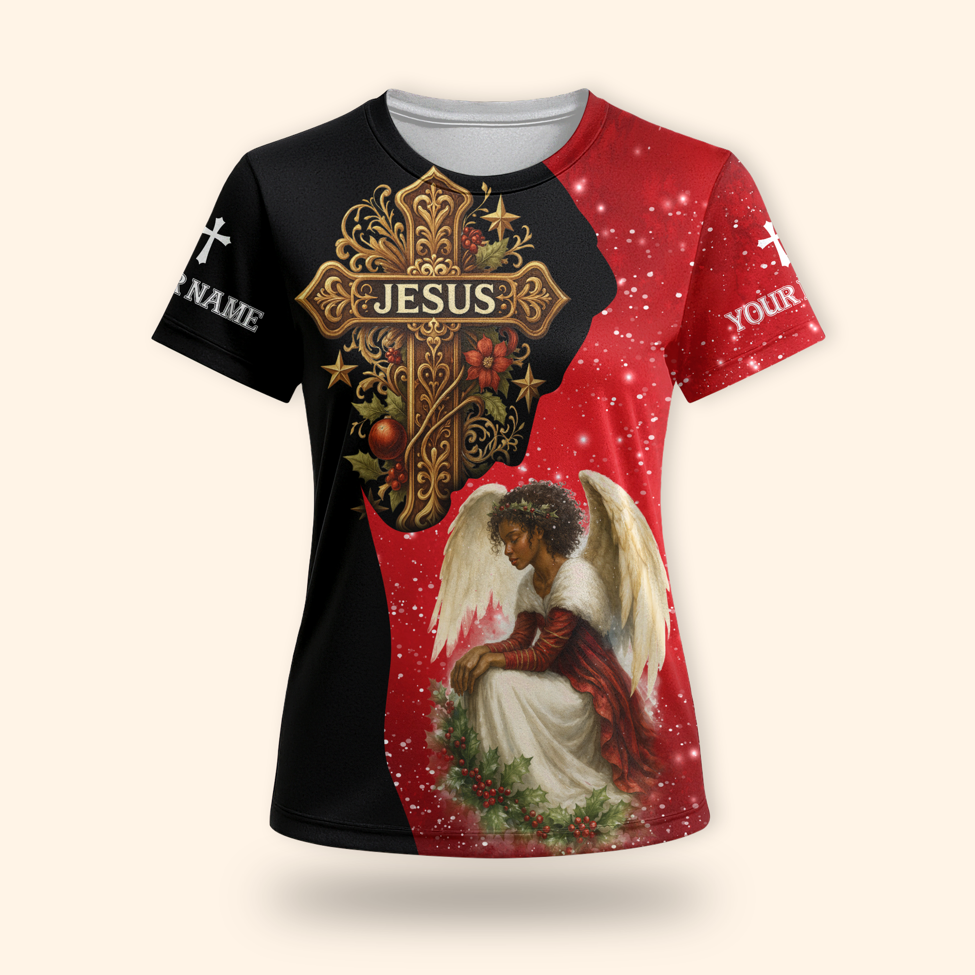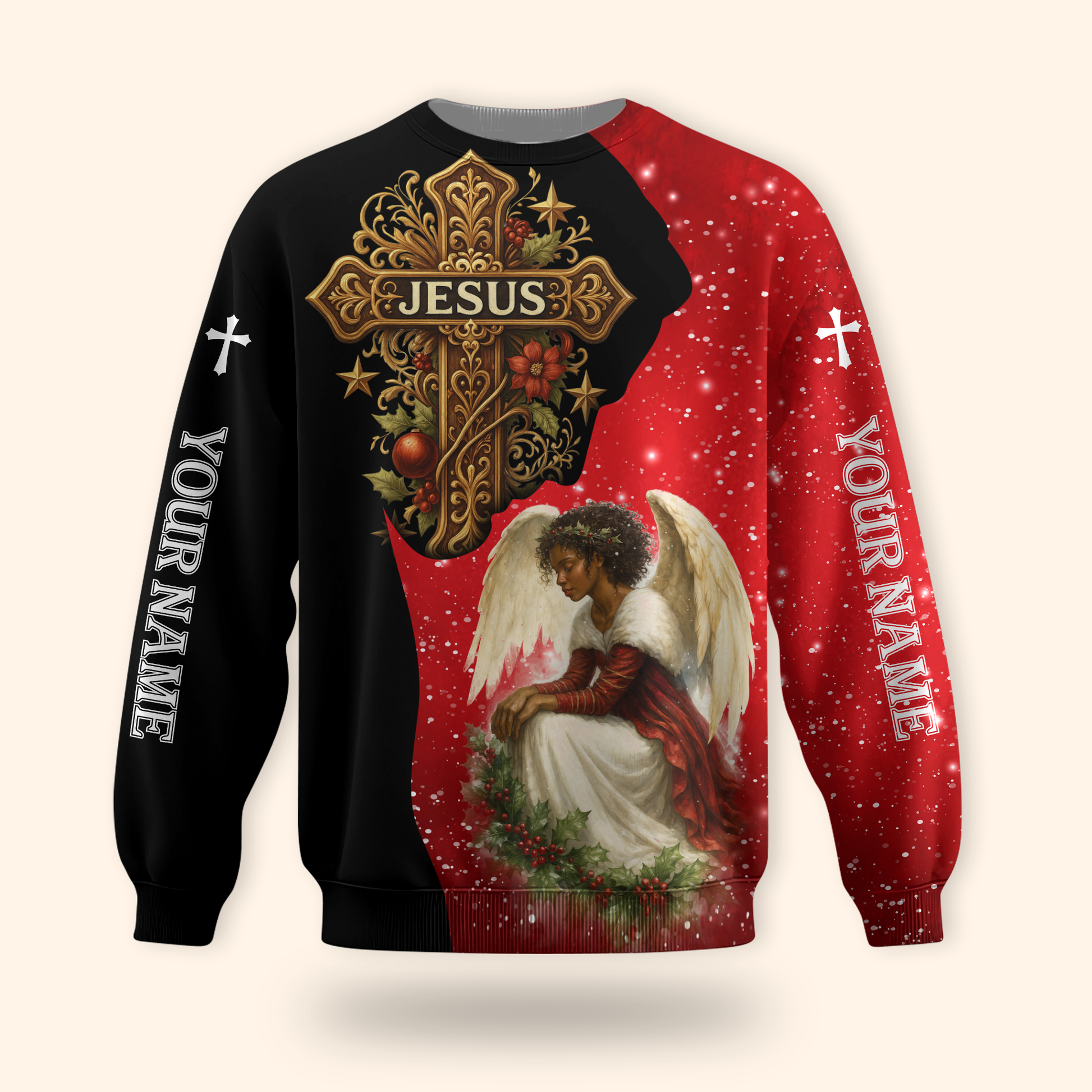 Personalized Jesus Cross Hoodie – Angel Praying Christmas Zip Up