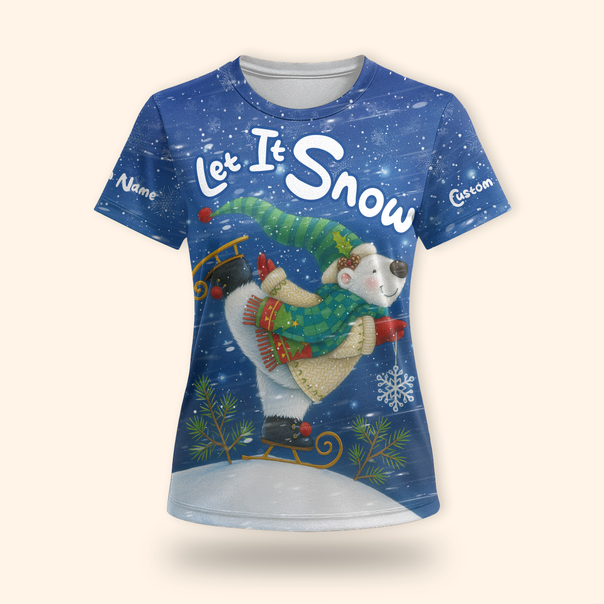 Personalized Let It Snow Hoodie – Cute Polar Bear Christmas Zip Up
