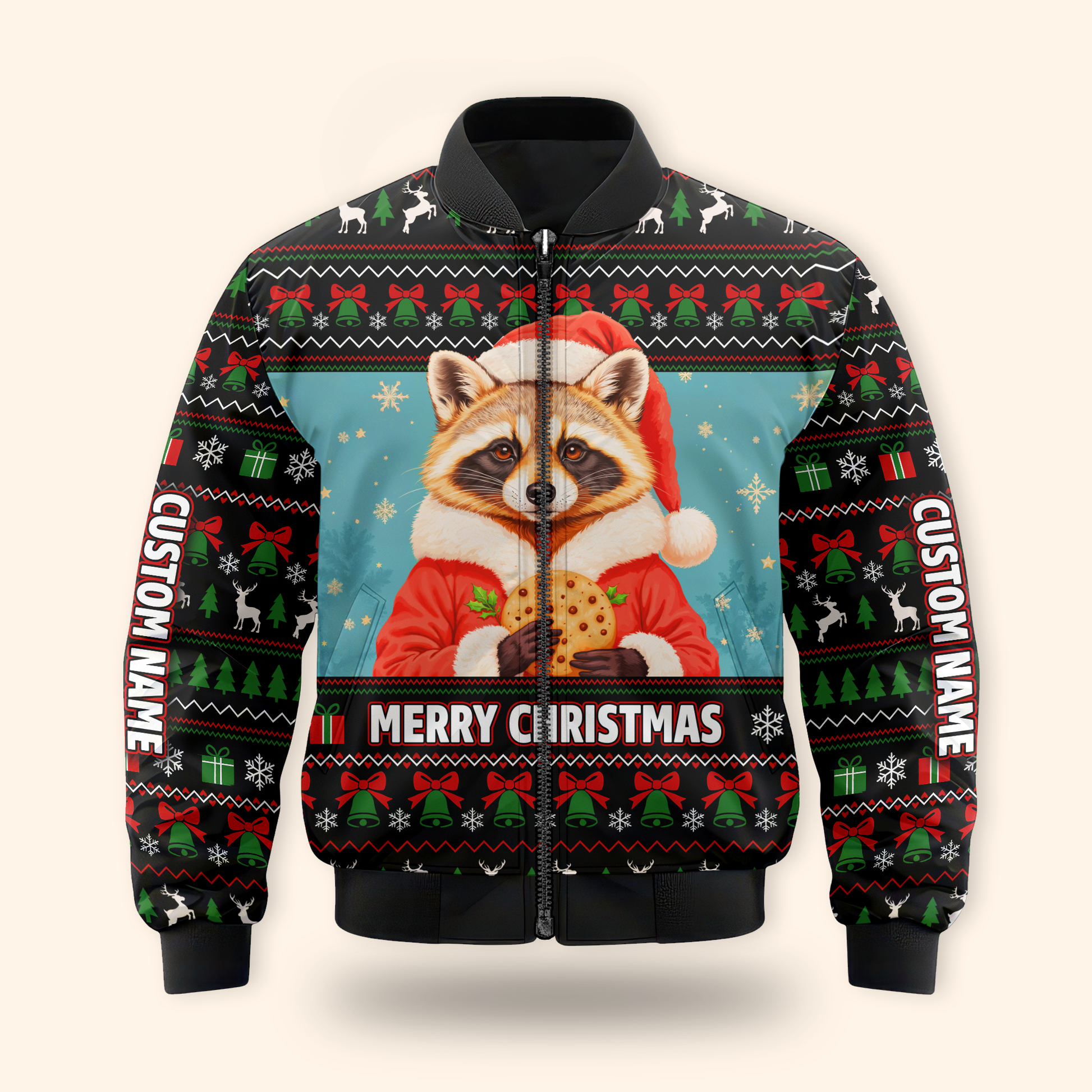 Personalized Raccoon Christmas Hoodie – Cute Merry Christmas Zip Up