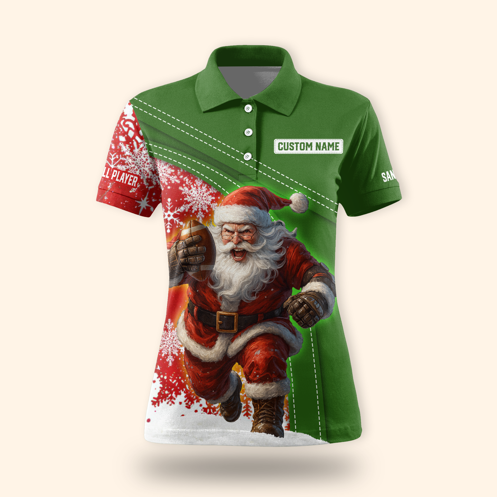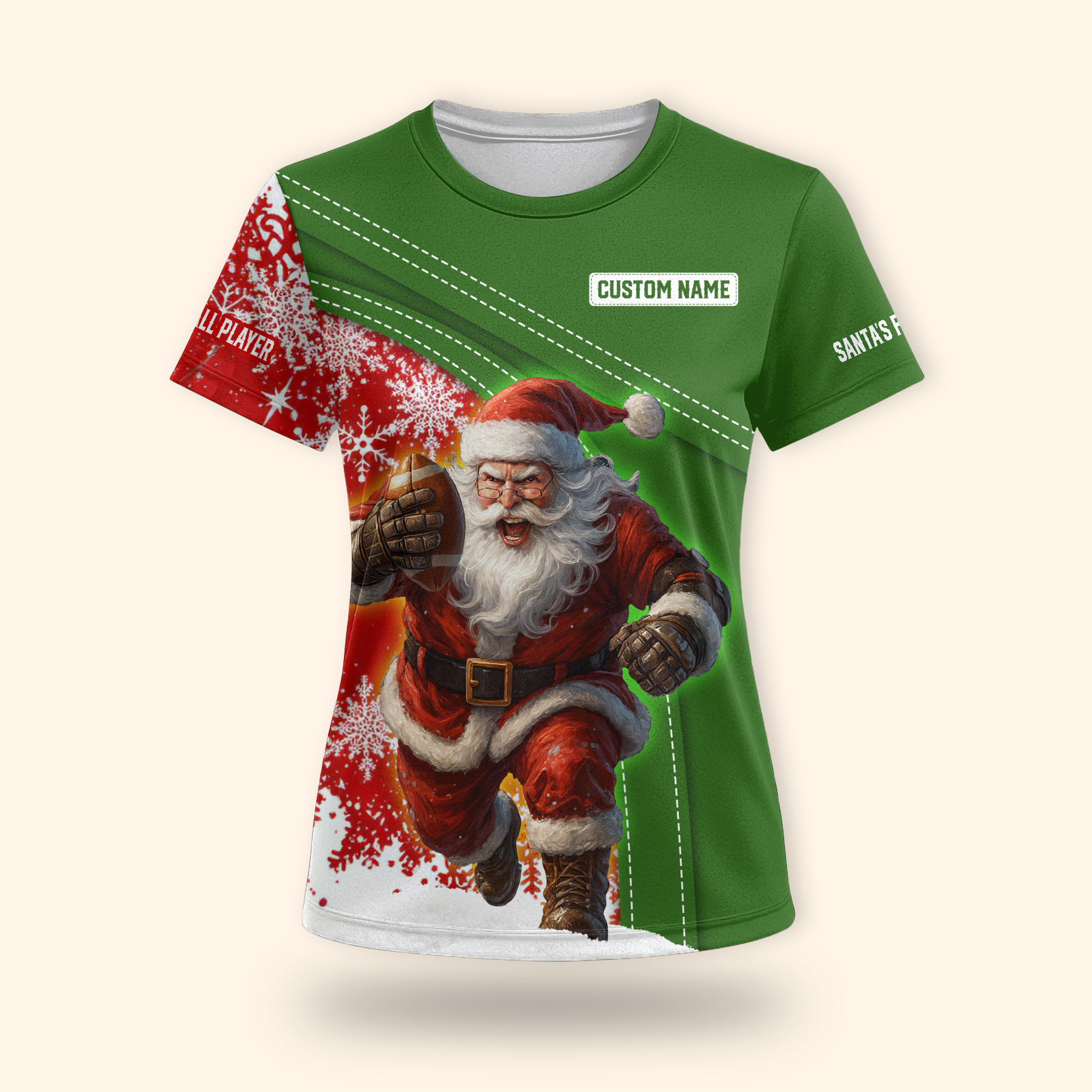 Santa Football Hoodie – Custom Name Christmas Sports Zip Up