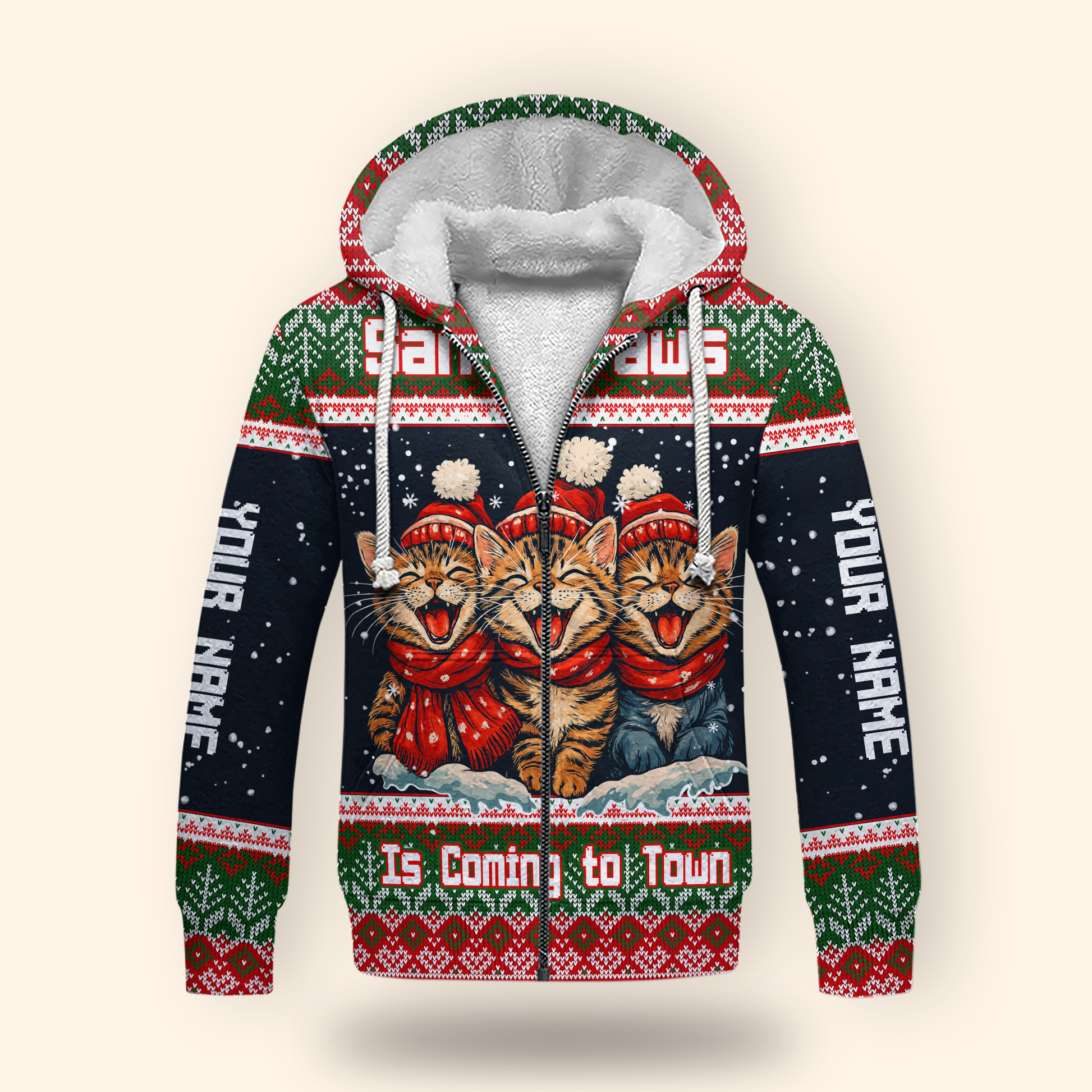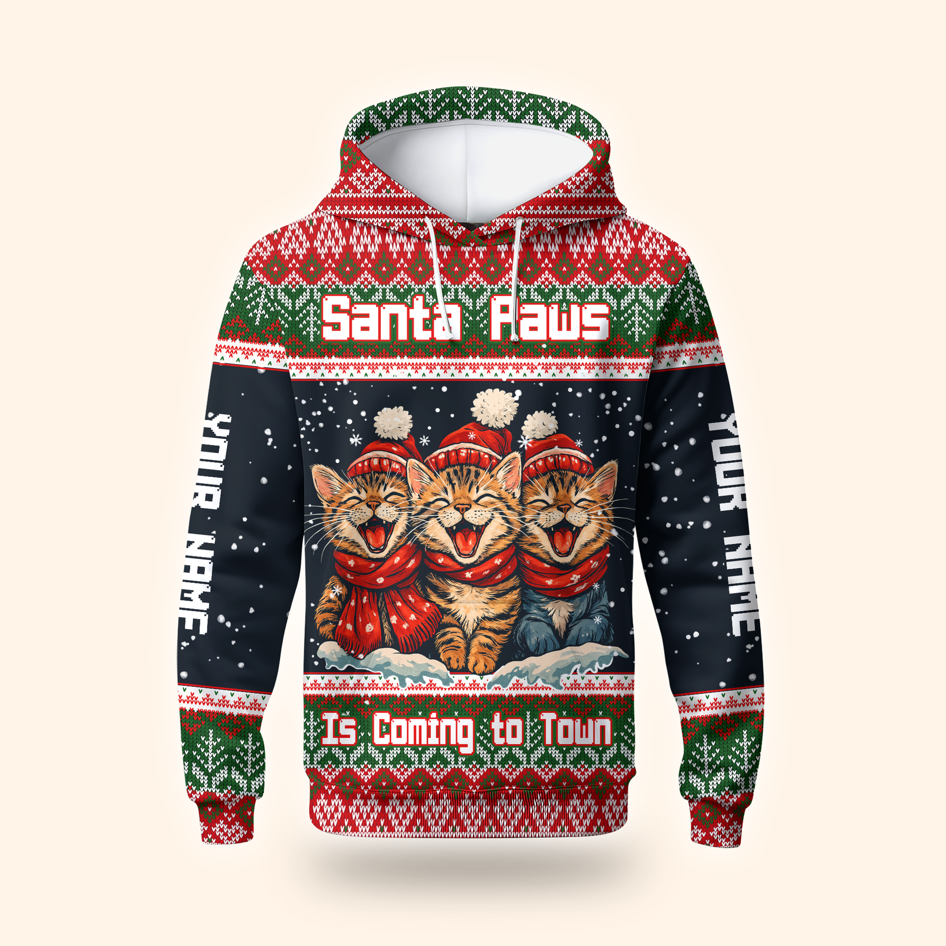 Santa Paws Is Coming to Town Hoodie – Personalized Christmas Cat Hoodie for Cat Lovers